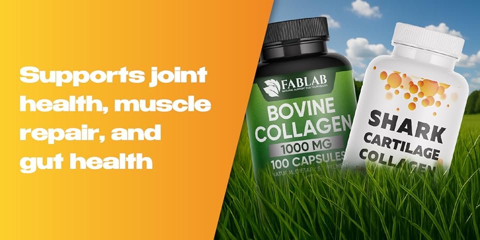 FabLab Bovine Collagen Type I Supplement - Nutritional Supplement for Joint, Nerve & Bone Support - Non-GMO, Anti-Aging Dietary Product with Hydrolyzed Peptides - 100 Capsules